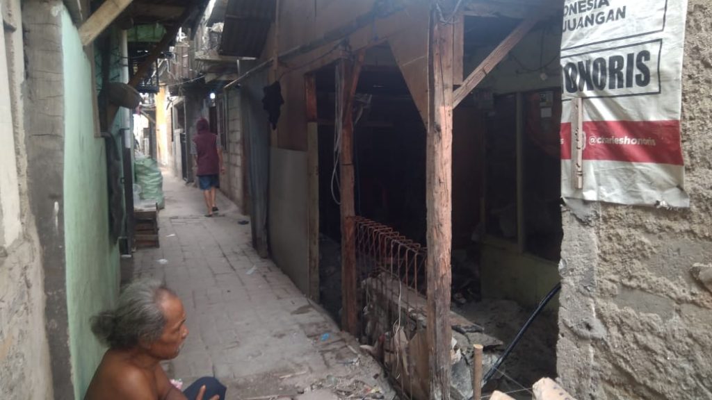 Emak : “Rumah emak hampir rubuh nak, selalu kebanjiran kalo ujan deras datang. Karena rumah-rumah disampingnya udh pada dibangun. Jadi kalo ujan, air selalu saja masuk ke dalam rumah. Sebab rumah kita kan rendah, sementara got ga ada, jalanan lebih tinggi, air masuk deh.